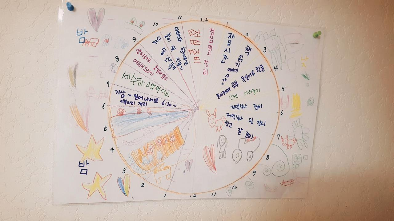 어차피 집에서 머물러야 하는 것이라면 우리 부부와 아이들 모두에게 좋은 기회로 만들어보자고 의기투합했다. 주일 가정에서 조용하게 예배를 드린 뒤 곧바로 '하루 계획표'를 만들었다.