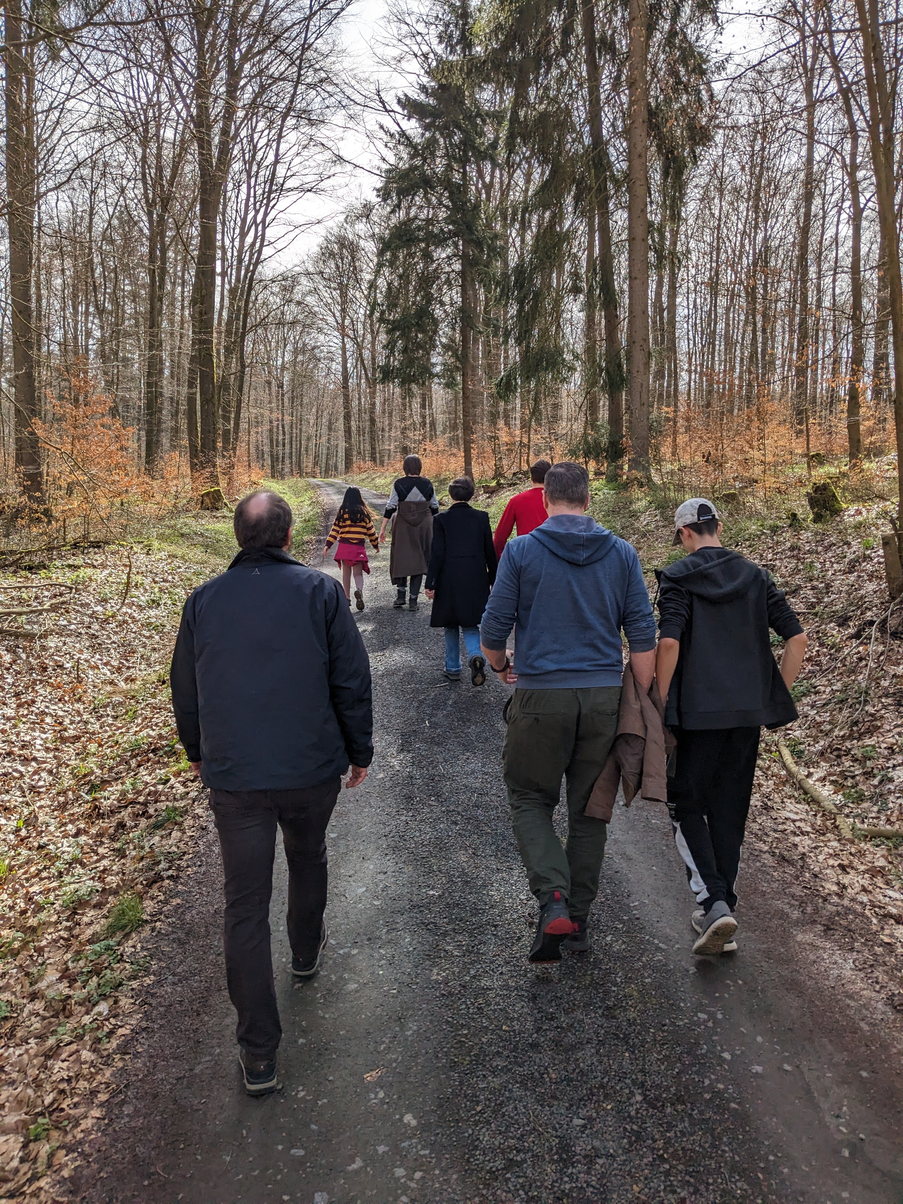 세 가족의 부부들이 함께 산책을 하기로 했는데, 각 집의 첫째들이, 아니 첫째들만 따라 나섰다.