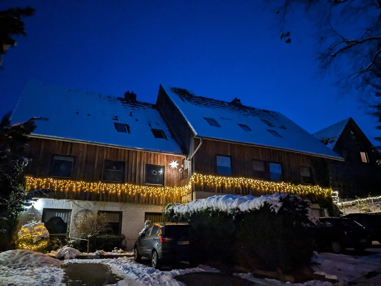 그런 연유로 전통적으로는 11월 마지막 일요일 이전까지는 크리스마스 장식을 하지 않습니다. 물론 요즘은 이런 전통을 굳이 따지는 사람들이 적어졌다. 한국이든 독일이든 어디든 새로운 시대, 새로운 세대가 출현하는 중인 것이다. 요즘은 11월 중순 이후부터 시간이 날 때마다, 하고 싶을 때마다 장식을 하는 사람들이 눈에 많이 띈다. 그러나 여전히 어른 세대에서는 이런 전통을 중요시하는 분이 많다. 우리 옆집 아주머니만 하더라도 죽음의 일요일까지 온갖 장식들을 준비하기 시작해서, 다음날 월요일부터 사방팔방 전구를 달고 장식들로 꾸미기 시작했다. 본격적으로 크리스마스를 준비하는 분위기에 시동이 걸린 것이다.