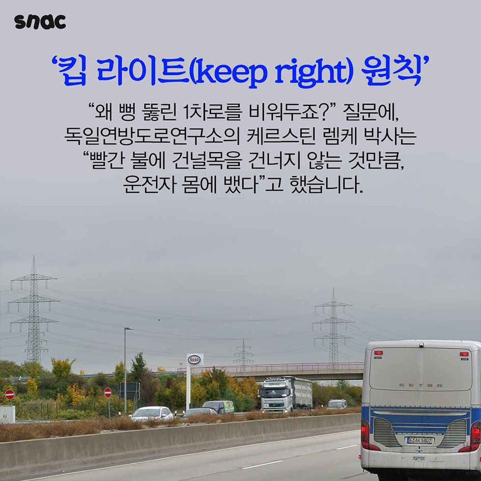 독일에서는 항상 가장 오른쪽 차선을 이용해야 한다는 규칙이 있다.