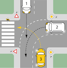 마지막으로 내가 3번 차량이라면? 내가 왼편으로 꺽으려 할 때 모든 차량이 내 오른 편에 있으므로, 나는 그들을 모두 보낸 뒤 비로소 주행할 수 있다.