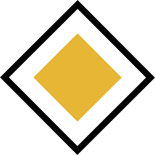(주의!!) 독일은 기본적으로 오른편이 우선하므로 별도의 표시가 없다면 직진 우선이 아니다. 따라서 직진 우선 도로에 익숙한 한국인들은 이에 주의를 기울여야 한다. 다만, 위의 도로는 직진 우선 도로이다. 가운데가 노란 색인 마름모 표지판은 직진이 우선한다는 의미이다.