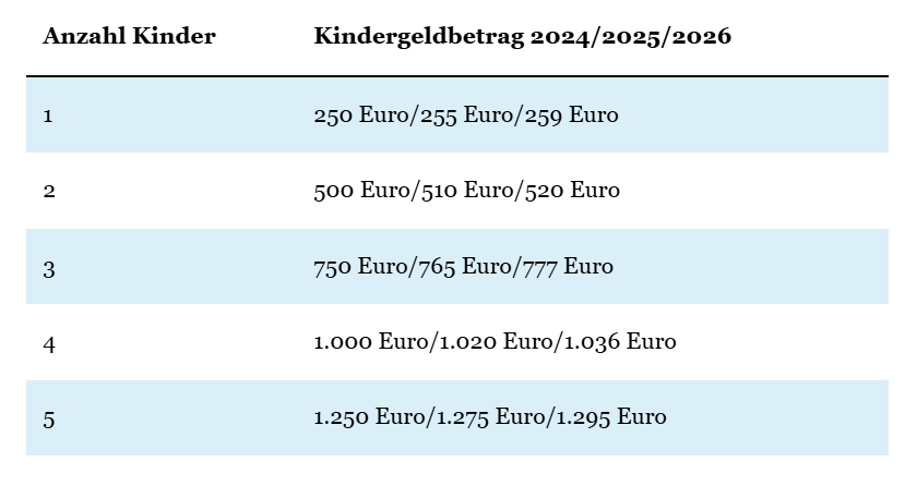 위의 픽토그램은 현재 2024년의 자녀양육수당의 지원액을 정리한 것이다. 사실 현재 독일 정부가 지원하는 킨더겔트도 한국인의 기준에서 보면 결코 적은 수준은 아니다. 자녀 한 명당 250유로, 우리나라 화폐단위로 바꾸면 대략 36,5만 원(*1460원=1유로로 임의 계산) 정도의 지원금이 책정되어 있다.