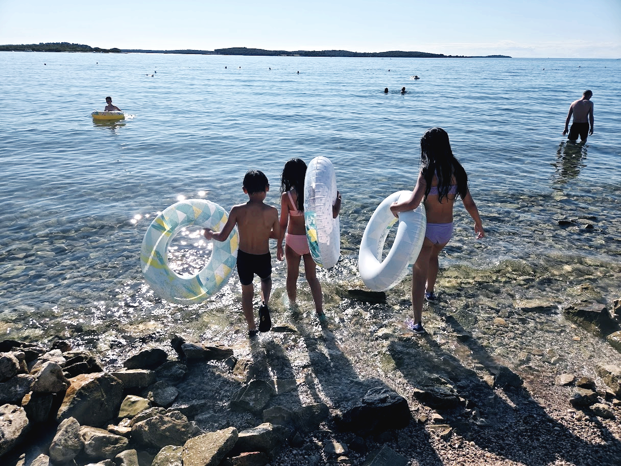 긴장이 풀리고, 먼 길의 피로가 살짝 밀려오던 순간. 도시 초입에서부터 느껴지는 여유로운 분위기, 붉은 기와지붕, 바다 냄새, 남쪽 햇살. 비로소, 우리가 찾고자 했던 그 ‘느긋함’이 서서히 몸에 스며들기 시작했다. 독일과 오스트리아의 흐린 하늘과 강한 비가 크로아티아에선 사라져 있었다. 아무 계획이 없었기에 모든 것이 가능했다. 우린 짐을 채 풀기도 전에 근처의 해변으로 다시 나갔다. 숙소에서 차로 약 5분 정도 떨어진 곳에 있었다. 몇 시간 가볍게 바다에 몸을 담그고, 자갈밭에 누워 오후의 햇볕을 쬐었다.