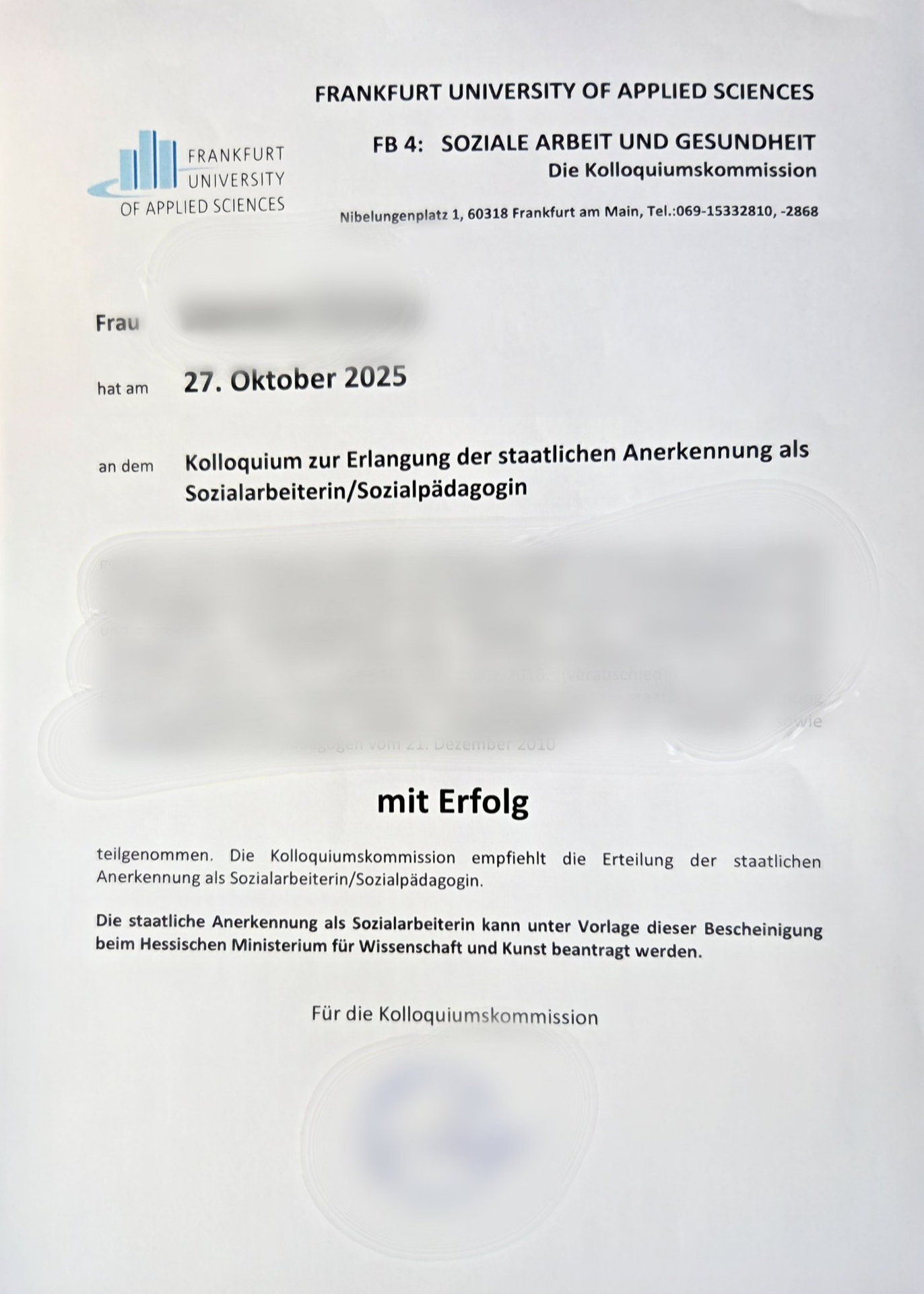 독일 사회복지사 국가 인증 과정(Staadtliche Anerkennung Sozialarbeit)을 모두 통과했습니다.